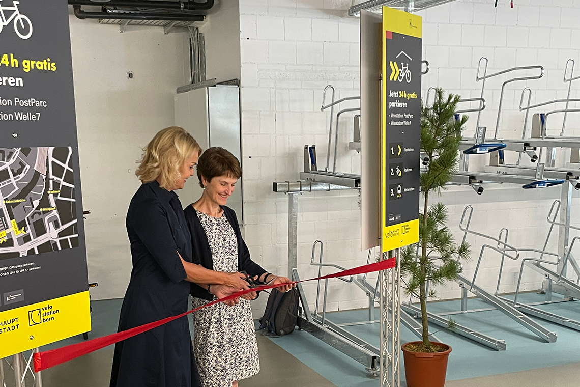 An einem Medienevent, der ebenfalls von TRIEBHAUS geplant und umgesetzt wurde, eröffneten die Gemeinderätinnen Franziska Teuscher und Marieke Kruit feierlich die Velostation Welle7 und lancierten das 24-Stunden-Gratis-Parking.
