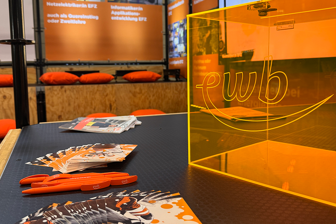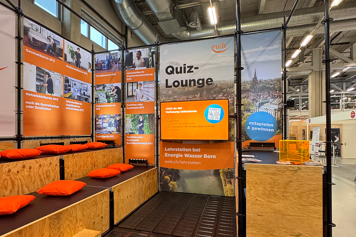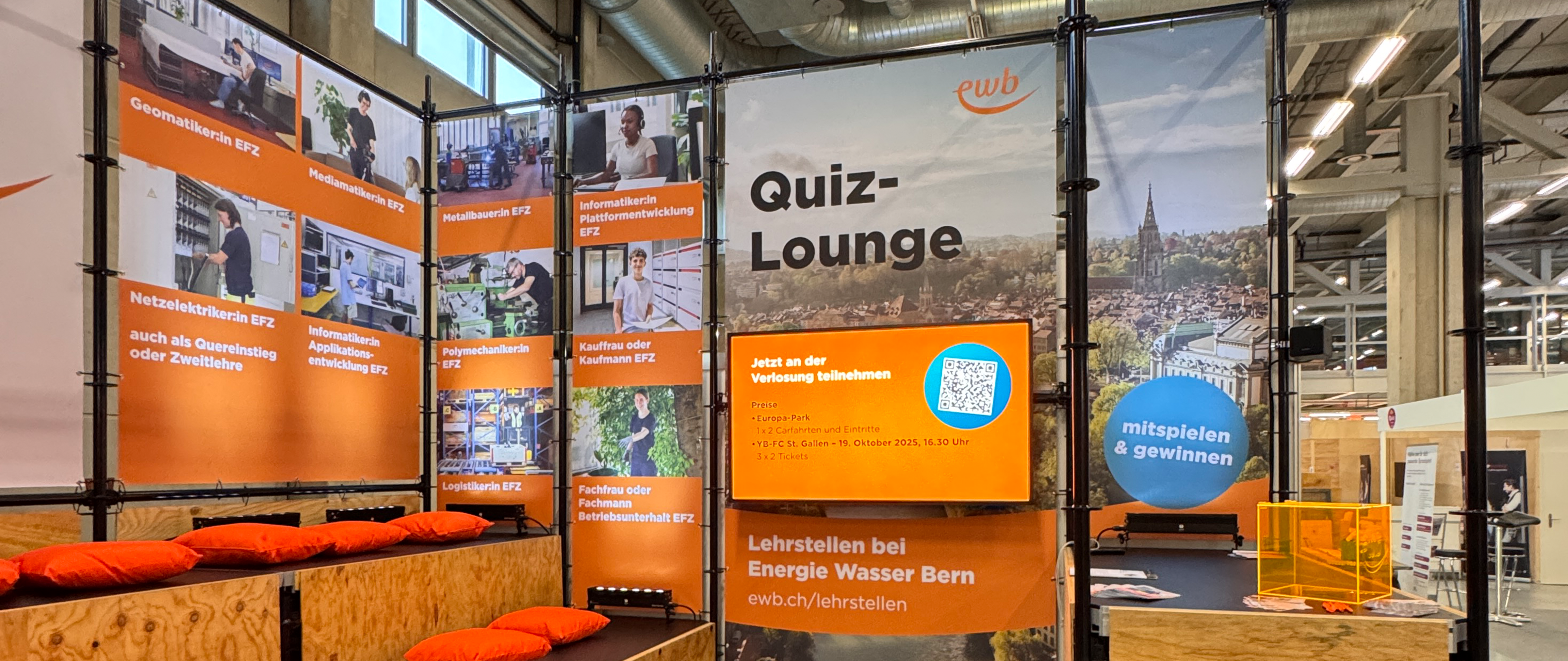 Die Berufs- und Ausbildungsmesse (BAM) in Bern ist das jährliche Happening schlechthin für alle Lehrbetriebe. Deshalb auch für die ewb, bei der man ganze zehn verschiedene Berufslehren absolvieren kann. Von der Netzelektrikerin, bis hin zum Geomatiker. Bei der ewb kannst du eigentlich fast alles werden.