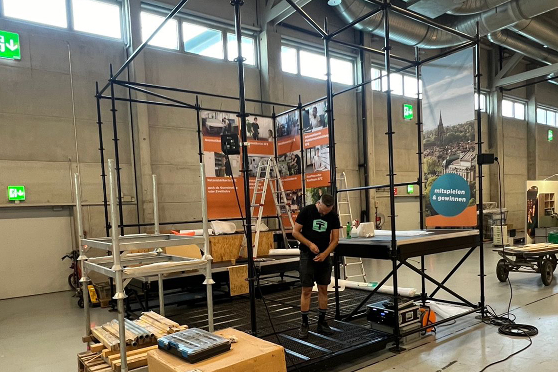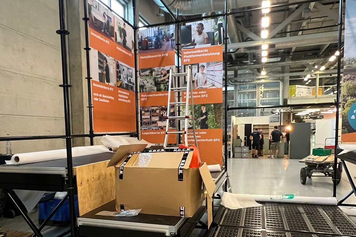 Damit dies die potenziellen Lernenden auch erfahren, wurde TRIEBHAUS damit beauftragt, ein Messestandkonzept zu entwickeln, bei welchem man mit Jugendlichen in Kontakt kommt. Connecten, gäu.