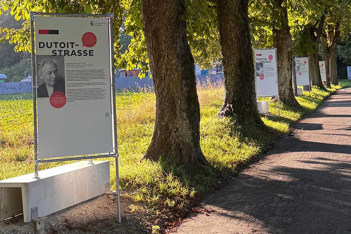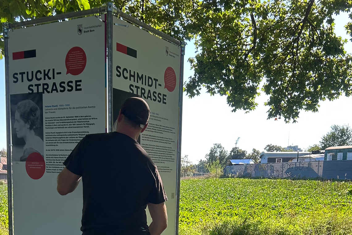 Auf den Info-Tafeln erfährt man übrigens die Strassennamen des zukünftigen Quartiers. Alle Strassen werden nach weiblichen Personen benannt, die in der Stadt Bern in der Vergangenheit etwas bewirkt haben.