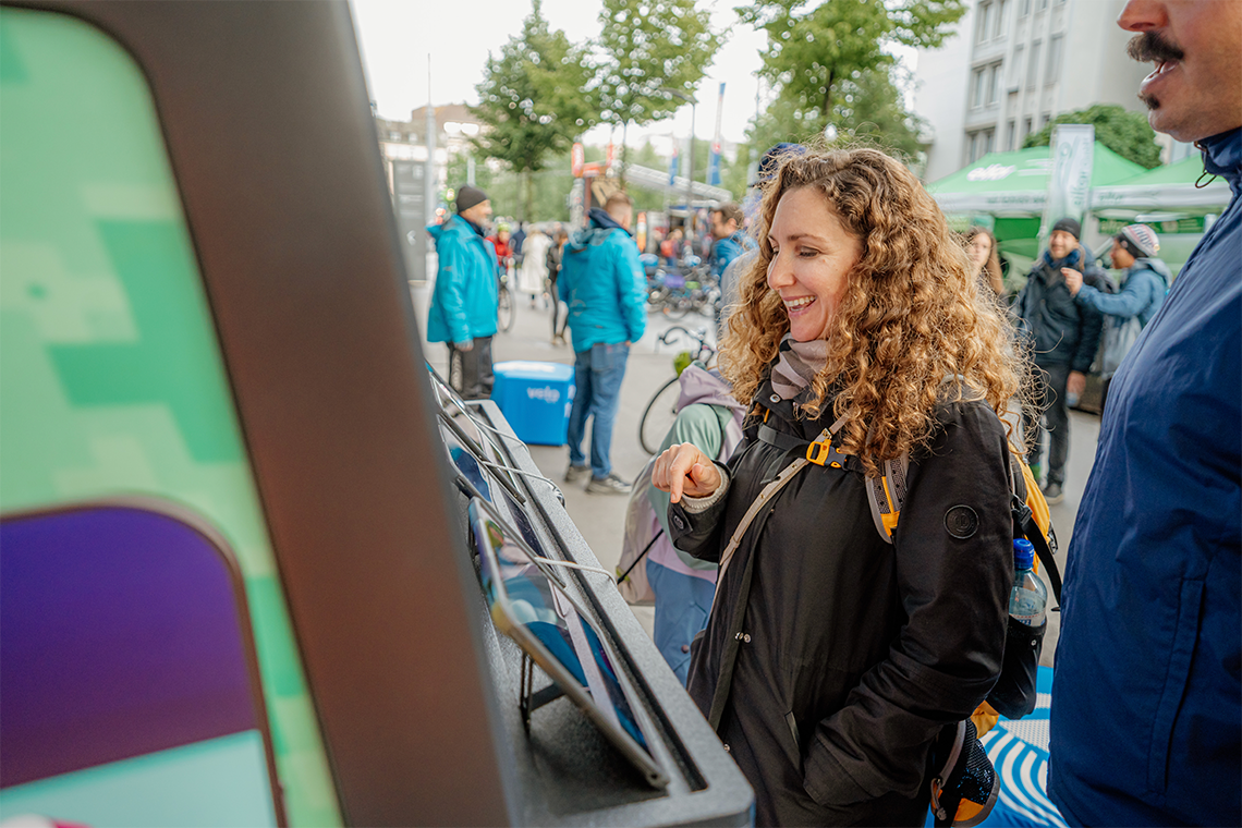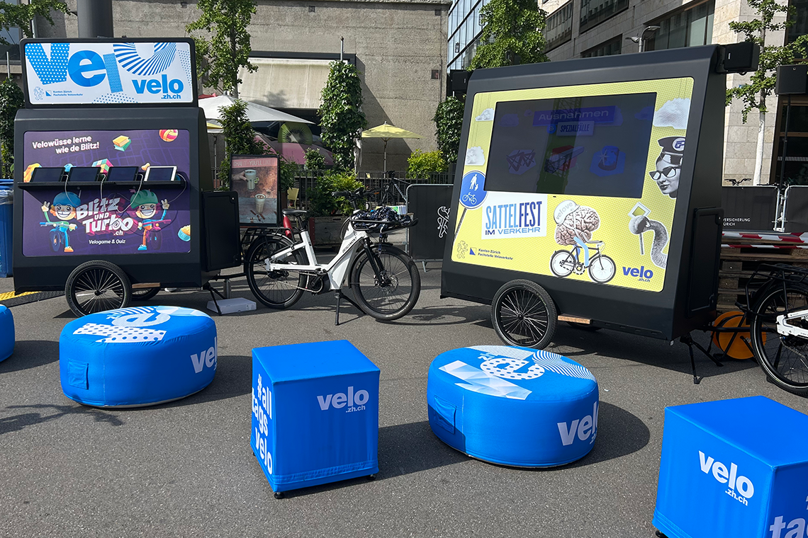 Der Kanton Zürich wünschte sich für die Fachstelle Veloverkehr einen fluiden Messeauftritt. Wer jetzt zuerst an irgendetwas mit Wasser denkt, liegt nicht ganz falsch. Aber halt auch nicht wirklich richtig.